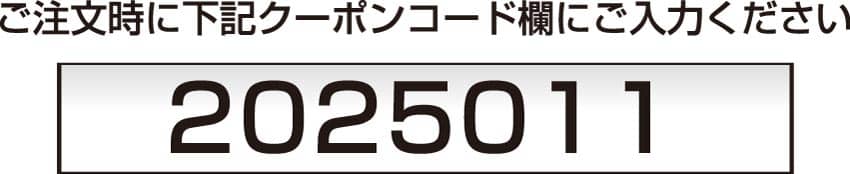 オンラインショッピングの決済画面にて、「②お支払い方法選択」ページにクーポン番号入力欄がございますので、こちらにクーポン番号「2025011」をご入力ください。