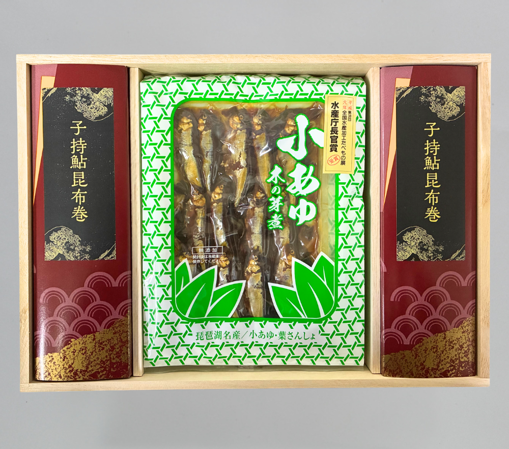 子持鮎昆布巻箱入×2箱・小あゆ木の芽煮90g×3袋